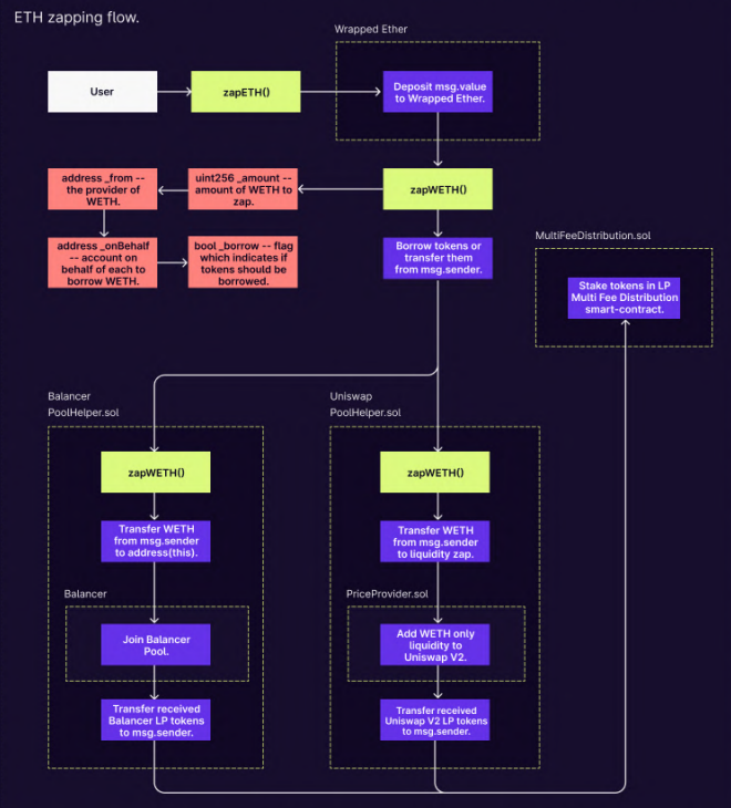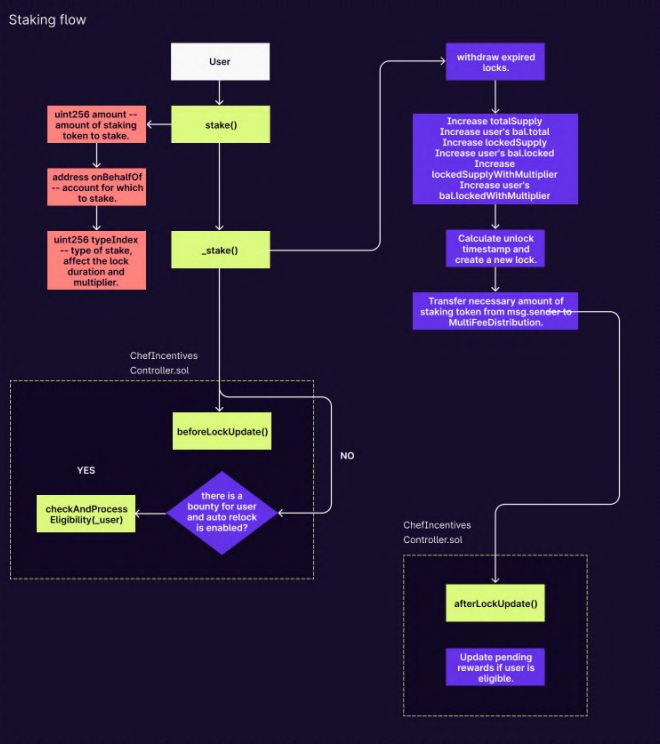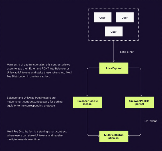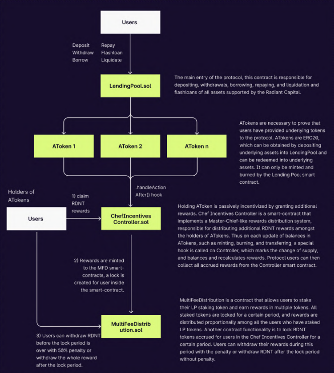 <figure><img src="https://content.gitbook.com/content/c8CwAEN8ihh81y90gyG1/blobs/CBu16eP1VzU4eKvTX0Pn/image.png" alt=""><figcaption><p>Lending pool, rTokens, MultiFeeDistribution protocol flow</p></figcaption></figure>