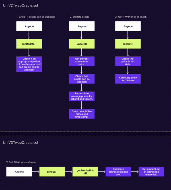 <figure><img src="https://content.gitbook.com/content/c8CwAEN8ihh81y90gyG1/blobs/heeTTRuBsXN1ziQq9PEL/image.png" alt=""><figcaption><p>Uni V2/V3 Twap Oracle</p></figcaption></figure>