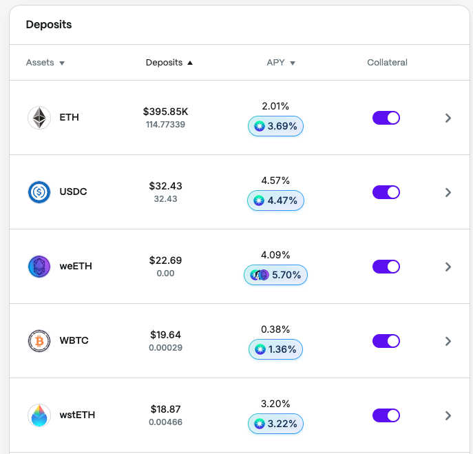 To withdraw an asset, navigate to the **Dashboard** and select the asset you wish to withdraw.