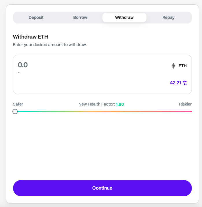 Select the desired amount and submit the transaction.