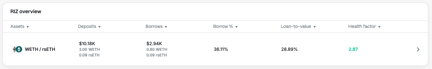Health FactorIn the context of RIZ, the health factor is also isolated for each market. Therefore, each isolated market will have its own distinct health factor.