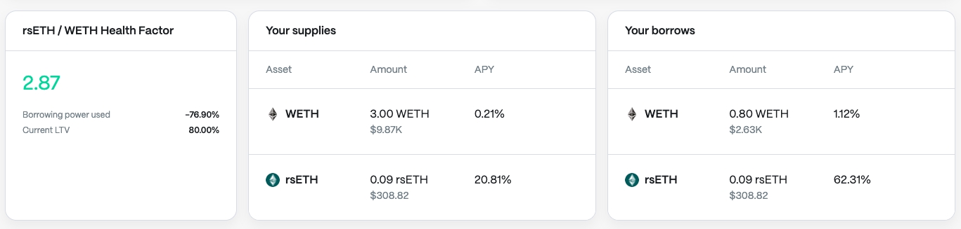 The borrowing power is confined to the specific market where the collateral is deposited. This means that if you deposit collateral in the ZRO/USDC market, you can only borrow assets from that market and not from any other market, such as rsETH/WETH.