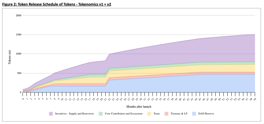 13.3% to the team, released over five years, with a three-month cliff (10% of the team allocation is locked at the genesis of the protocol and unlocks at the 3-month cliff)