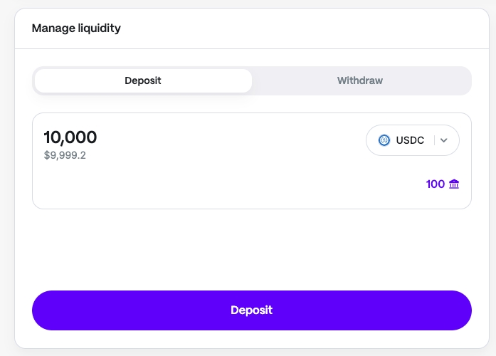 To deposit, select the vault into which you want to deposit liquidity from the drop-down list.